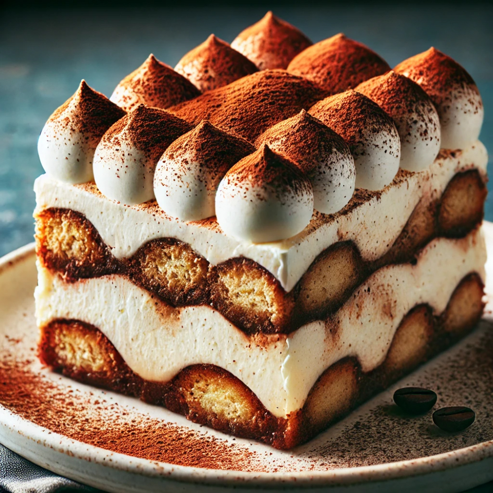 A delicate Italian dessert with mascarpone cream, coffee-soaked sponge cake, and cocoa powder.